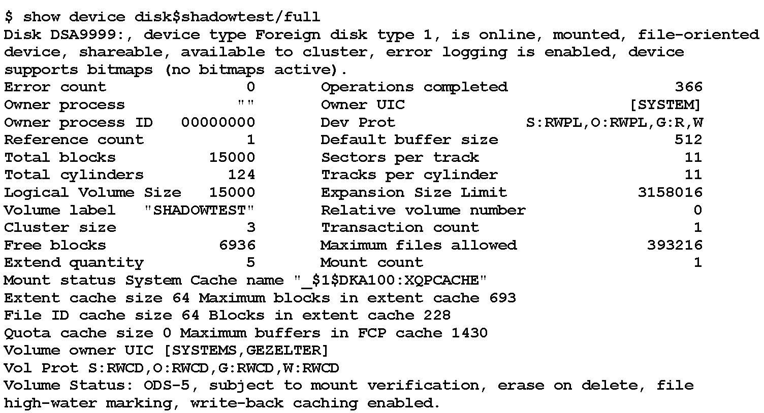 Nested virtualizations distort the relevance and accuracy of the OpenVMS device data displays. The DCL SHOW DEVICE/FULL command[4] displays physical geometry information about cylinders, tracks, and sectors/track, Figure 2, but such virtualized device data does not necessarily correspond to physical reality.